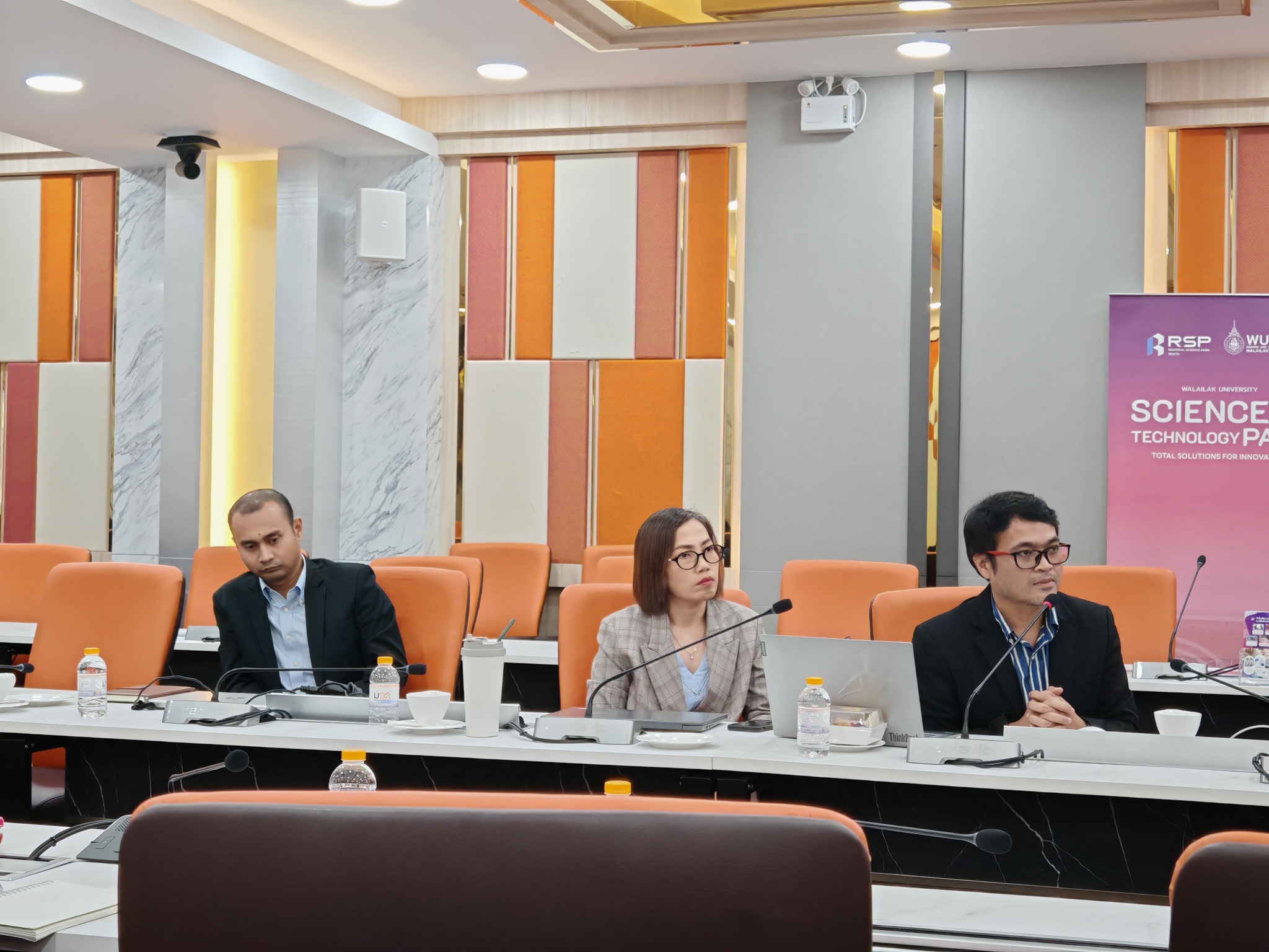 อธิการบดี ผู้บริหารและบุคลากร มหาวิทยาลัยเทคโนโลยีราชมงคลพระนคร ศึกษาดูงานด้านวิชาการ การสร้างเครือข่ายความร่วมมือที่เกี่ยวข้องกับทรัพย์สินทางปัญญาและการวิจัย เมื่อวันที่ 1 สิงหาคม 2568 ณ ห้องโมคลาน ชั้น 3 อาคารศาสตราจารย์ ดร.วิจิตร ศรีสอ้าน มหาวิทยาลัยวลัยลักษณ์