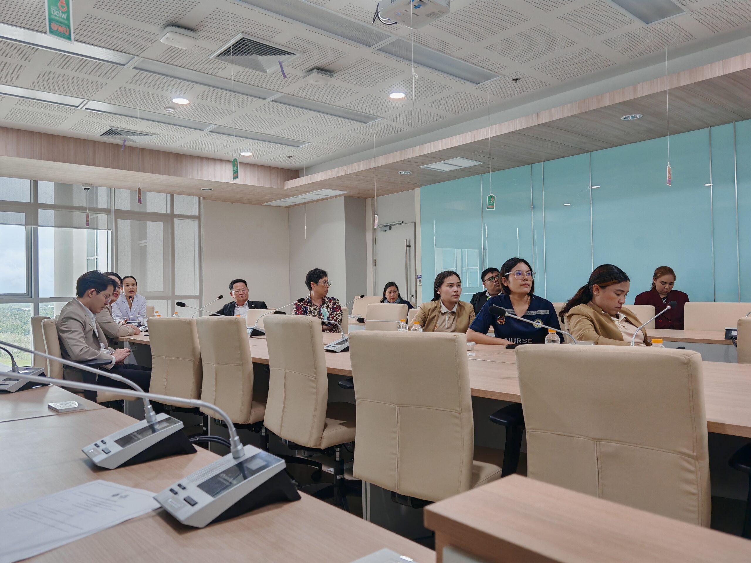 ในภาคบ่าย รองศาสตราจารย์ พญ.นนทพรรณ ผาสุก รองคณบดีสำนักวิชาแพทยศาสตร์ มหาวิทยาลัยวลัยลักษณ์ ให้การต้อนรับคณะศึกษาดูงาน ณ ห้องประชุมสำนักวิชาแพทยศาสตร์ ชั้น 8 อาคาร C โดยได้นำเสนอข้อมูลการจัดการเรียนการสอนของสำนักวิชาแพทยศาสตร์ และแลกเปลี่ยนเรียนรู้ร่วมกันในฐานนะผู้ผลิตบัณฑิตแพทย์และผู้ใช้บัณฑิต ซึ่งการมาศึกษาดูงาของโรงพยาบาลกระบี่นครินทร์ อินเตอร์เนชั่นแนล ในครั้งนี้ นอกจากมีความประสงค์เยี่ยมชมการบริหารจัดการด้านมาตรฐานการบริการ ระบบสารสนเทศทางการแพทย์ และระบบดูแลผู้ป่วยของศูนย์การแพทย์มหาวิทยาลัยวลัยลักษณ์แล้ว คณะได้มีความสนใจการจัดการเรียนการสอนของสำนักวิชาแพทยศาสตร์ เพื่อจะประสานความร่วมมือทางวิชาการ การพัฒนาการวิจัย รวมทั้งการส่งนักศึกษาเข้าฝึกประสบการณ์ ณ โรงพยาบาลเอกชนกระบี่นครินทร์ อินเตอร์เนชั่นแนล ซึ่งเป็นโรงพยาบาลเอกชนที่ให้บริการทางการแพทย์แก่ชาวต่างชาติเป็นหลักด้วย