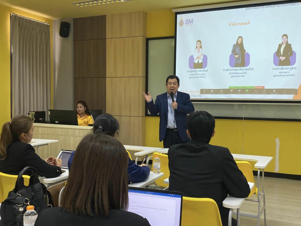 วันที่ 13 พฤษภาคม 2567 เวลา 13.00 – 17.30 น. รองศาสตราจารย์ ดร.สุรินทร์ ไหมศรีกรด รองอธิการบดีมหาวิทยาลัยวลัยลักษณ์ ให้การต้อนรับ พบปะและบรรยายในหัวข้อ “ทิศทางการจัดการศึกษาของมหาวิทยาลัยวลัยลักษณ์” : การปฏิรูปการจัดการเรียนการสอน /การใช้ทักษะภาษาอังกฤษในทุกรายวิชา / การพัฒนาหลักสูตรให้มีความทันสมัยและน่าสนใจแก่ผู้บริหาร อาจารย์ และบุคลากรคณะพาณิชยศาสตร์และการจัดการ มหาวิทยาลัยสงขลานครินทร์ วิทยาเขตตรัง จำนวน 41 คน