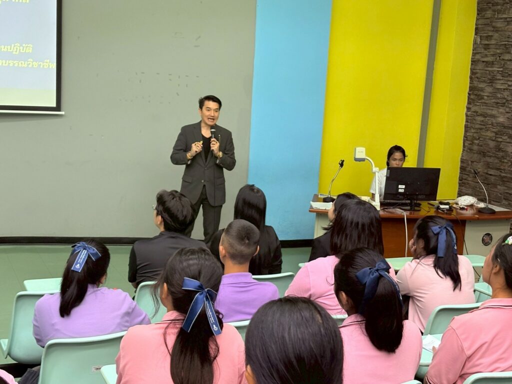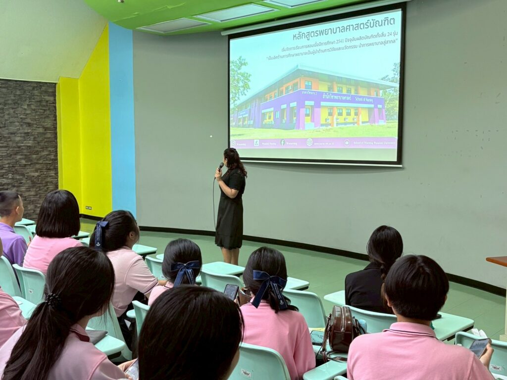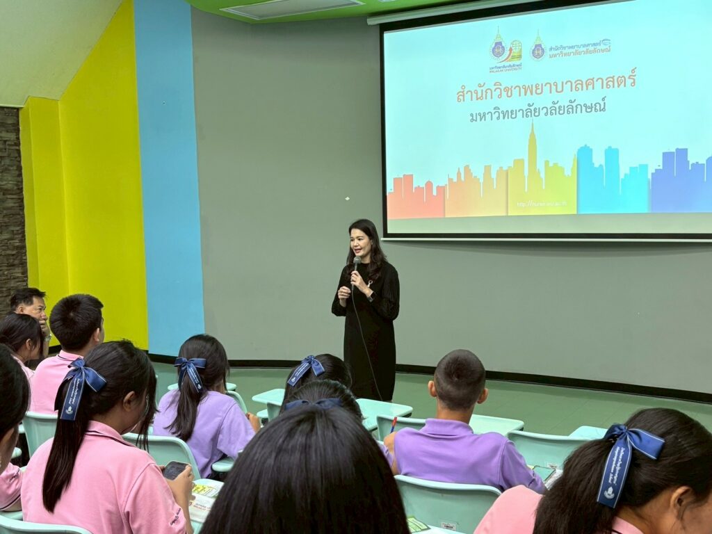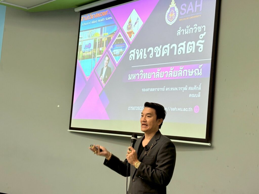 วันนี้ (9 มกราคม 2569 ) รองศาสตราจารย์ ดร.ศราวุธ ปาลิโภชน์ รองอธิการบดีฝ่ายวิชาการ ด้านวิทยาศาสตร์สุขภาพ ให้การต้อนรับคณะครูและนักเรียนชั้นมัธยมศึกษาปีที่ 4- 5 โรงเรียนหาดใหญ่รัฐประชาสรรค์ จังหวัดสงขลา จำนวน 43 คน ในโอกาสศึกษาเรียนรู้หลักสูตรทางวิทยาศาสตร์สุขภาพ เพื่อเป็นแนวทางการศึกษาต่อและเตรียมความพร้อมเข้าสู่รั้วมหาวิทยาลัย โดยให้การต้อนรับ ณ ห้อง 3201 อาคารเรียนรวม 3 มหาวิทยาลัยวลัยลักษณ์