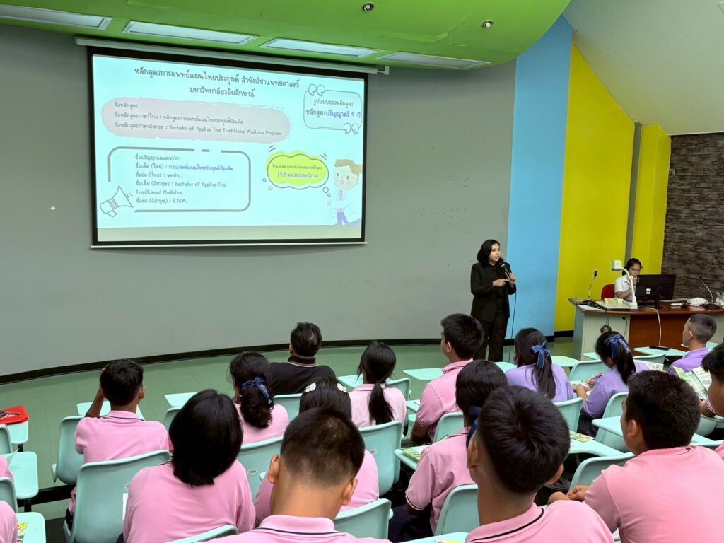 ในโอกาสเดียวกันนี้น้อง ๆ ได้รับฟังข้อมูลแนะนำหลักสูตร รวมทั้งแนวทางการศึกษาต่อเพื่อเตรียมความพร้อมก่อนจบการศึกษาจากมัธยมสู่อุดมศึกษา การเลือกหลักสูตรที่ใช่ ตลอดจนแนวทางการประกอบอาชีพที่เหมาะสมกับตัวเอง โดยมีอาจารย์สำนักวิชาแพทยศาสตร์ สำนักวิชาเภสัชศาสตร์ สำนักวิชาพยาบาลศาสตร์ และสำนักวิชาสหเวชศาสตร์ ร่วมพบปะพูดคุยให้ข้อมูลแบบเจาะลึกอีกด้วย