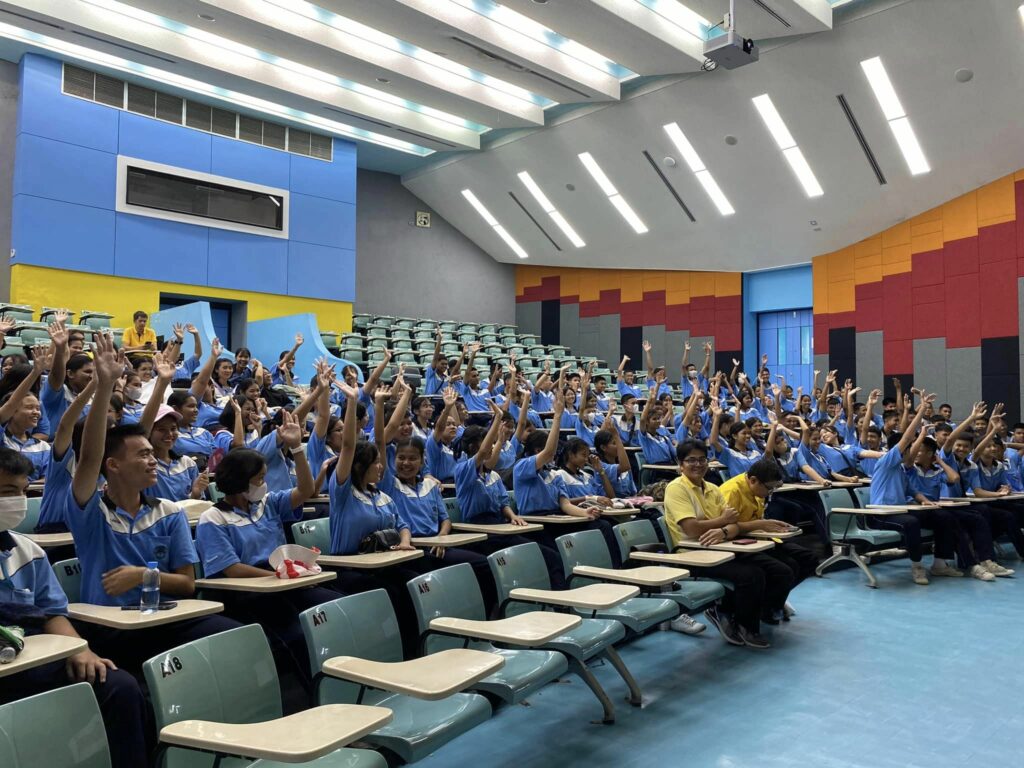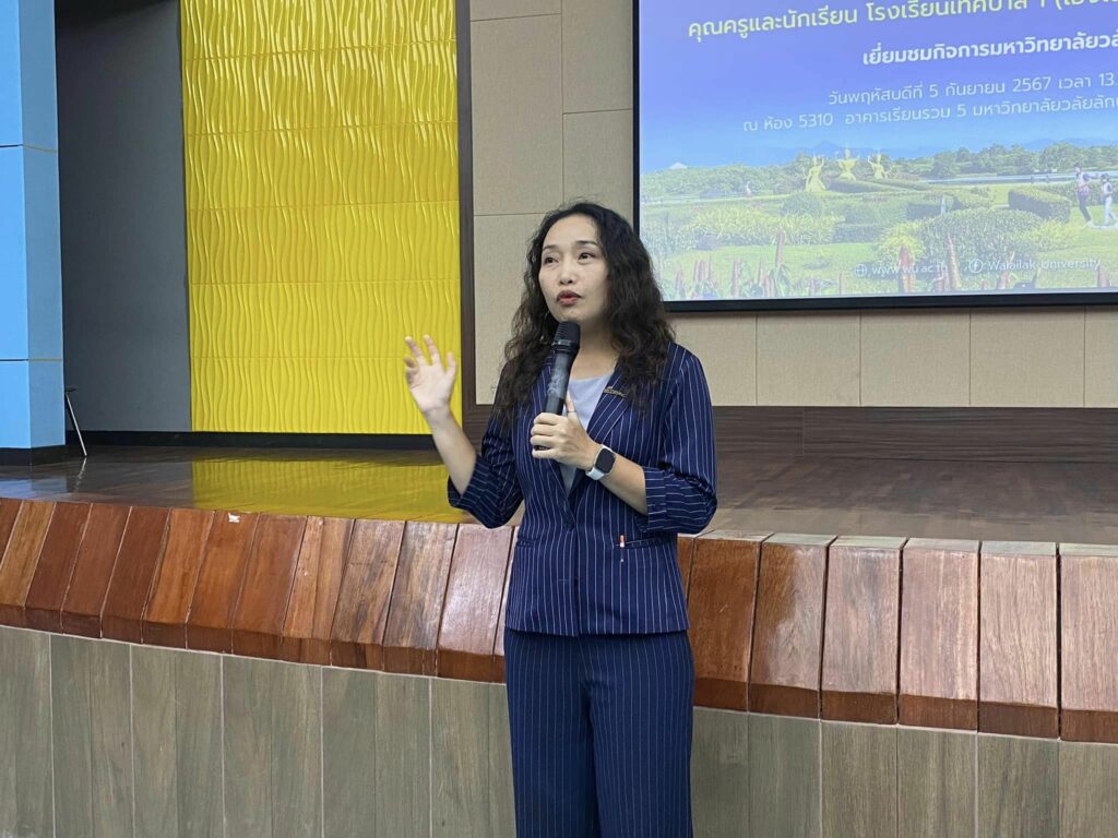 นำโดยคุณอานัส สายสลาม รองผู้อำนวยการโรงเรียน คุณครูและนักเรียนชั้นมัธยมศึกษาชั้นปีที่ 4 จำนวน 160 คน เนื่องในโอกาสมาศึกษาเรียนรู้และเยี่ยมชมมหาวิทยาลัย โดยรับฟังข้อมูลแนวทางเตรียมความพร้อมในการศึกษาต่อมหาวิทยาลัยวลัยลักษณ์ (TCAS68) จากสำนักวิชาต่างๆ ที่น้องๆ สนใจ ประกอบด้วยสำนักวิชานิติศาสตร์ สำนักวิชาการบัญชีและการเงิน สำนักวิชาวิศวกรรมศาสตร์และสำนักวิชาครุศาสตร์และศิลปศาสตร์ ทั้งนี้ น้องๆ นักเรียนได้รับความรู้และเทคนิคดีๆ เพื่อการเตรียมความพร้อม สมัครเรียนมหาวิทยาลัยวลัยลักษณ์ต่อไป และ TCAS68 จะเปิดรับนักศึกษาใหม่ในวันที่ 9 กันยายน 2567 สามารถดูรายละเอียดและสมัครเรียนได้ที่ https://entry.wu.ac.th/