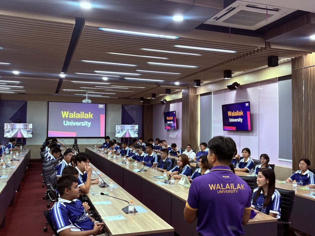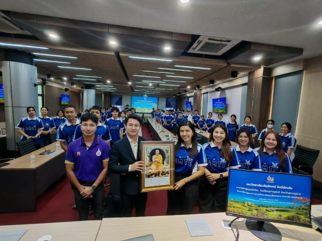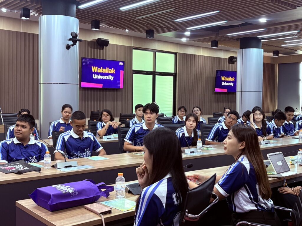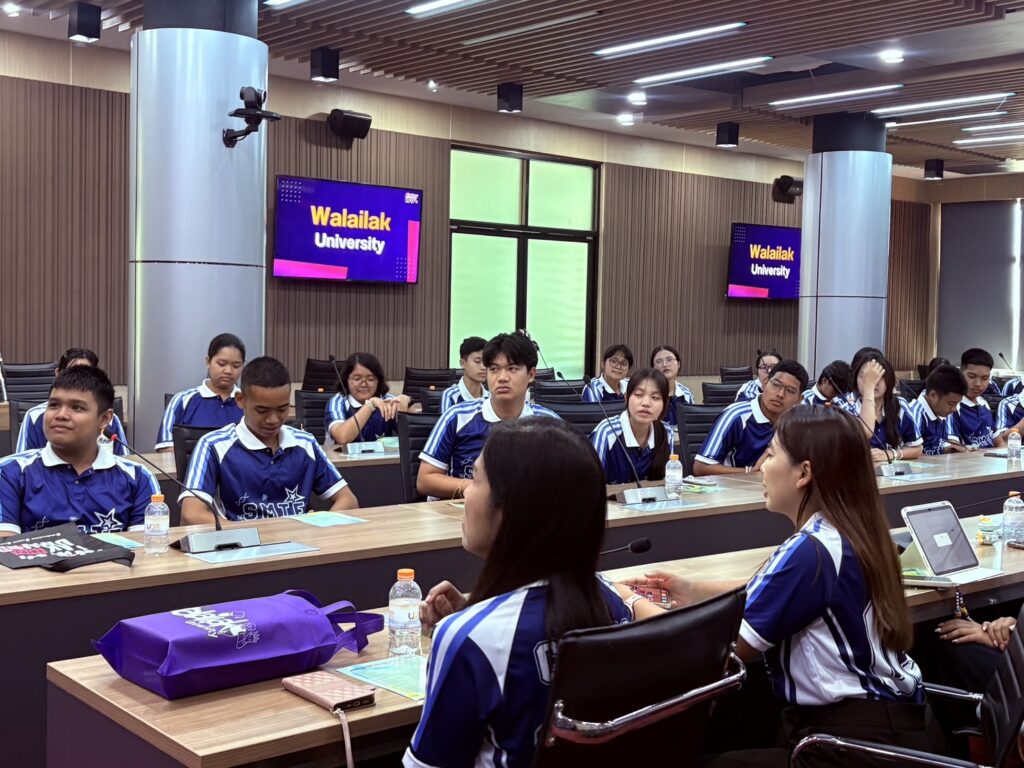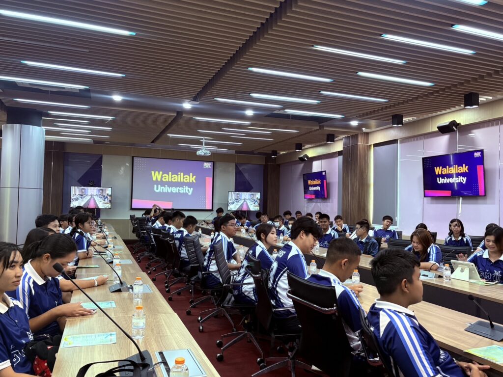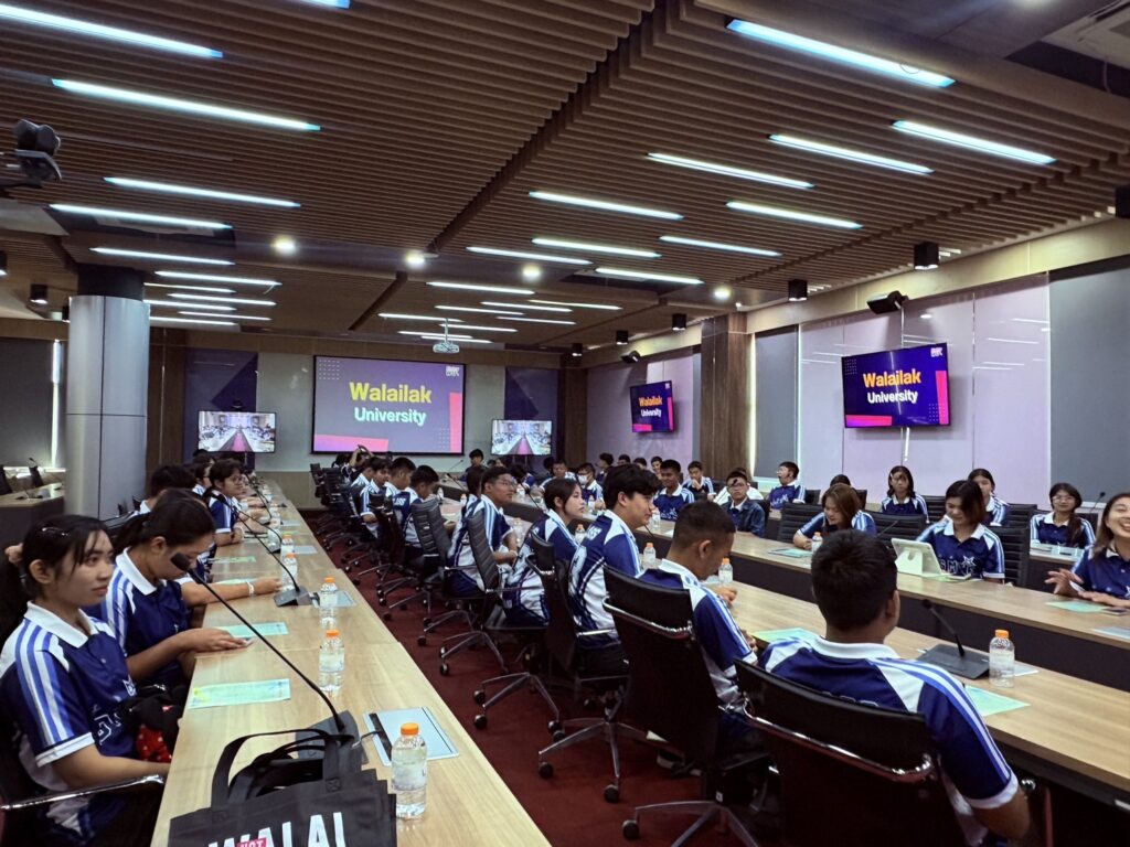 วันนี้ (4 สิงหาคม 2568) รองศาสตราจารย์ ดร.ศราวุธ ปาลิโภชน์ รองอธิการบดีมหาวิทยาลัยวลัยลักษณ์ให้การต้อนรับครูและนักเรียนชั้นมัธยมศึกษาปีที่ 5- 6 โรงเรียนสุราษฎร์ธานี จังหวัดสุราษฎร์ธานี จำนวนกว่า 60 คน ในโอกาสมาศึกษาเรียนรู้แนวทางการศึกษาต่อและเยี่ยมชมมหาวิทยาลัยวลัยลักษณ์