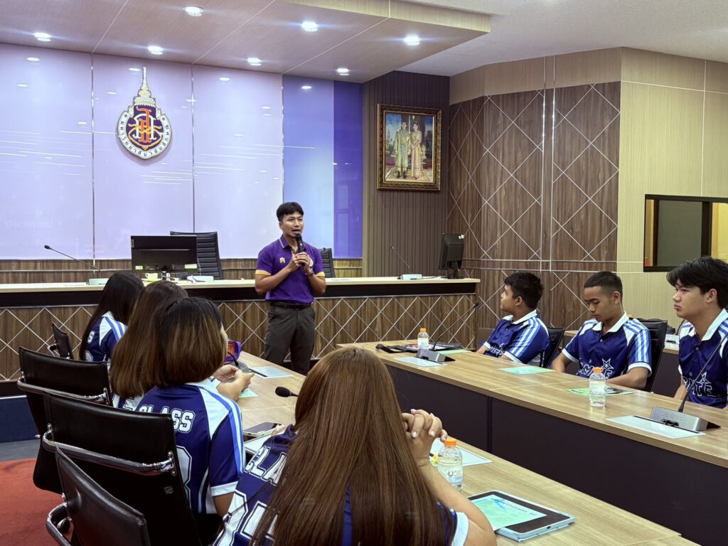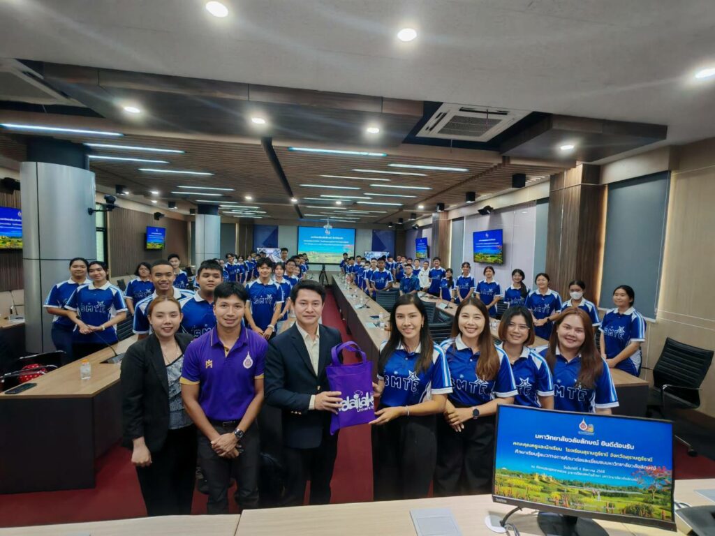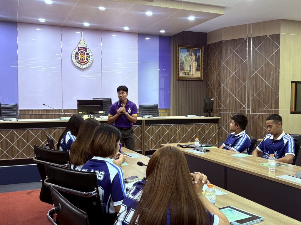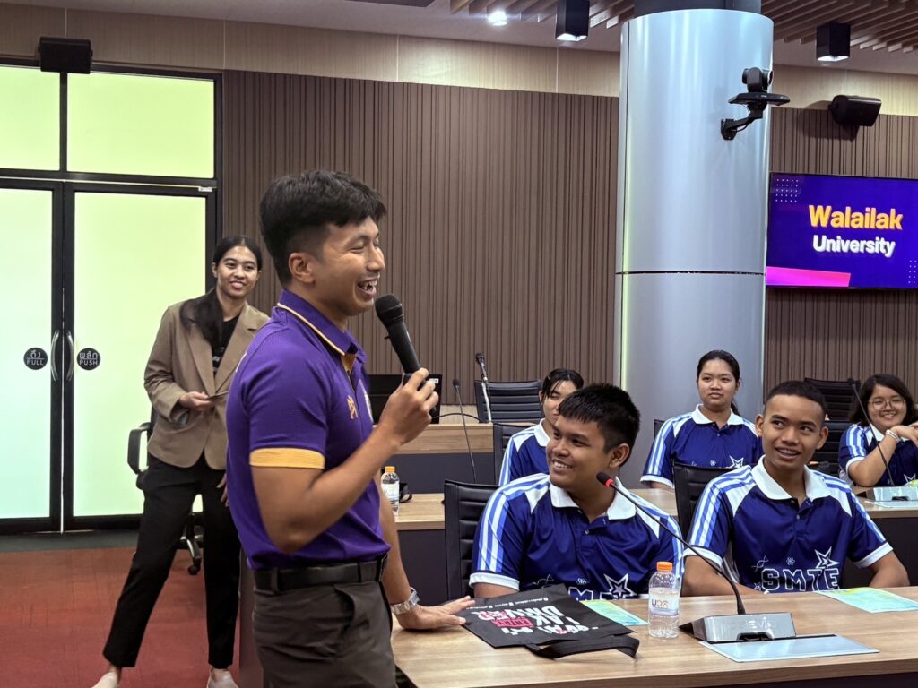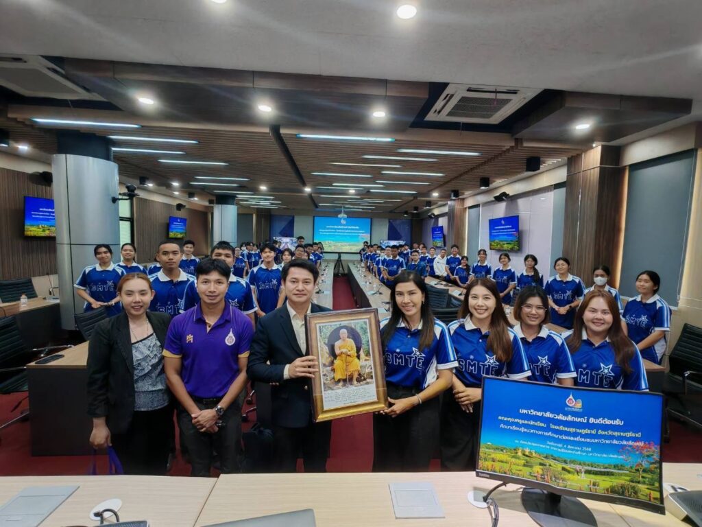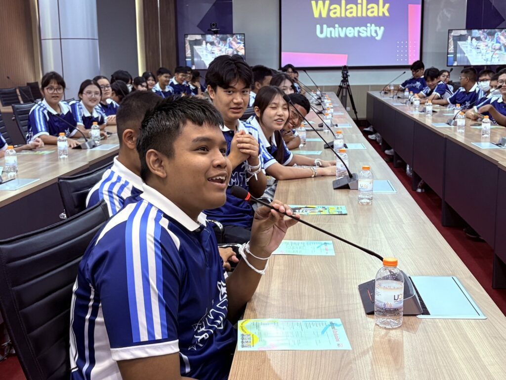 วันนี้ (4 สิงหาคม 2568) รองศาสตราจารย์ ดร.ศราวุธ ปาลิโภชน์ รองอธิการบดีมหาวิทยาลัยวลัยลักษณ์ให้การต้อนรับครูและนักเรียนชั้นมัธยมศึกษาปีที่ 5- 6 โรงเรียนสุราษฎร์ธานี จังหวัดสุราษฎร์ธานี จำนวนกว่า 60 คน ในโอกาสมาศึกษาเรียนรู้แนวทางการศึกษาต่อและเยี่ยมชมมหาวิทยาลัยวลัยลักษณ์