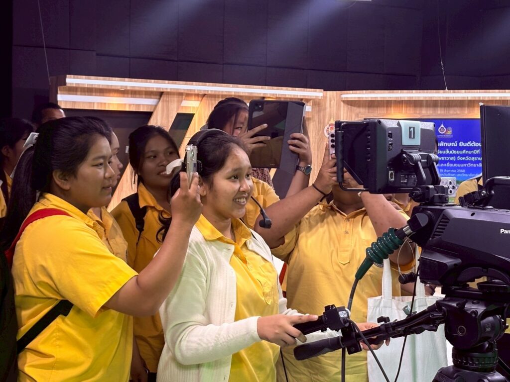 วันนี้ (19 สิงหาคม 2568) ส่วนสื่อสารองค์กร ให้การต้อนรับคณะครูและนักเรียนชั้นมัธยมศึกษาปีที่ 6 จำนวน 60 คน ศึกษาเรียนรู้การผลิตสื่อเพื่อการประชาสัมพันธ์ ปฏิบัติการจริงทั้งเบื้องหน้าและเบื้องหลังกล้อง น้อง ๆ ร่วมสนุกกับการเป็นผู้ดำเนินรายการ การจัดการภาพ และการควบคุมอุปกรณ์ ณ สตูดิโอ Walailak Channel ส่วนสื่อสารองค์กร ซึ่งเป็นสตูดิโอของมหาวิทยาลัยที่มีความพร้อมด้านอุปกรณ์ที่ทันสมัยครบวงจร สร้างประสบการณ์เสมือนการทำงานในสถานีโทรทัศน์จริงแก่นักเรียน