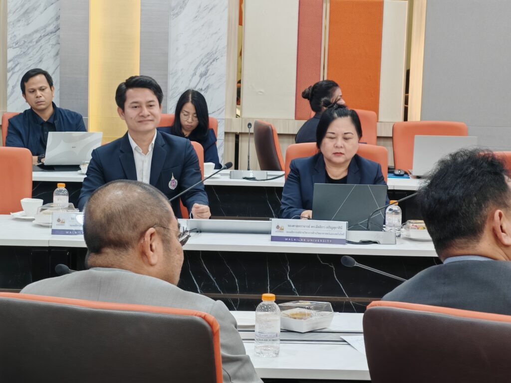 ศาสตราจารย์ ดร.สมบัติ ธำรงธัญวงศ์ อธิการบดีมหาวิทยาลัยวลัยลักษณ์ พร้อมด้วย รองศาสตราจารย์ ดร.มัลลิกา เจริญสุธาสินี รองอธิการบดีฝ่ายวิชาการด้านวิทยาศาสตร์และเทคโนโลยี รองศาสตราจารย์ ดร.ศราวุธ ปาลิโภชน์ รองอธิการบดีฝ่ายวิชาการด้านวิทยาศาสตร์สุขภาพ ผู้บริหารและบุคลากร ให้การต้อนรับผู้บริหาร คณาจารย์และบุคลากร จากวิทยาลัยนวัตกรรมและการจัดการ มหาวิทยาลัยราชภัฏสงขลา จำนวน 23 คน นำโดย ศาสตราจารย์ ดร.จรัส สุวรรณมาลา กรรมการสภามหาวิทยาลัยผู้ทรงคุณวุฒิ มหาวิทยาลัยวลัยลักษณ์ ในโอกาสมาศึกษาดูงานการจัดการเรียนการสอนตามกรอบมาตรฐานวิชาชีพด้านการเรียนการสอนของประเทศอังกฤษ (UKPSF) เมื่อวันที่ 24 เมษายน 2569 โดยจัดการต้อนรับ ณ ห้องโมคลาน ชั้น 3 อาคารศาสตราจารย์ ดร.วิจิตร ศรีสอ้าน มหาวิทยาลัยวลัยลักษณ์